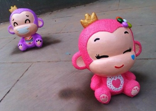 大学毕业前最后一次见面,我送S回家,陪着S将户口迁到外省,S陪着我在她家的县城走了走,然后看见图中的两只小猴子是白色的。于是S说,我们来画这个吧。很认真的各自选色,作画。S画了紫色那只小王子,现在仍在我的书桌上,我画了粉红色的公主,不知道S还有没有留着它?我还清楚的记得那天,2011年7月1日,我笑着跟她说了再见...